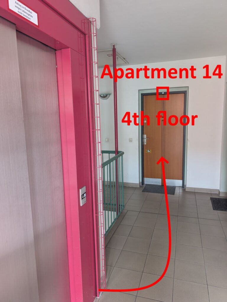 - Mit dem Schlüssel im Schlüsseltresor kannst du direkt in das Gebäude – dein Apartment befindet sich im 4. Stock