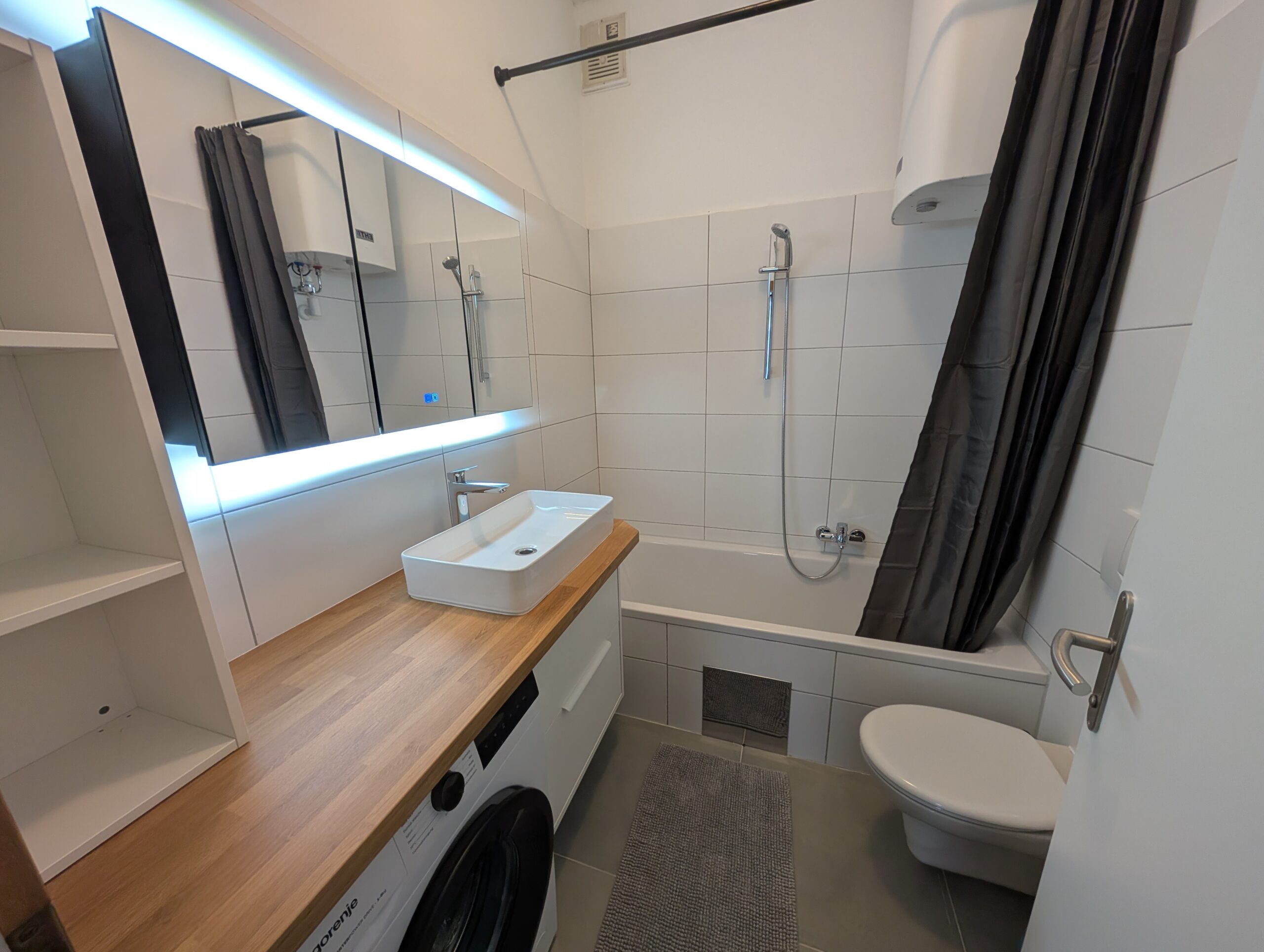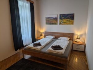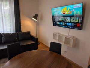 Die Wohnung verfügt über 1 schönes Schlafzimmer mit Doppelbett, einen großzügigen Wohn/Essbereich mit Schlafcouch mit Platz für weitere 2 Personen.